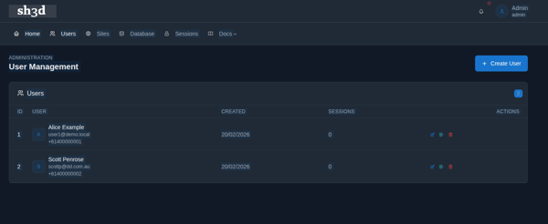 Unified identity management across multiple sites with flexible authentication methods, admin dashboards, and database views.