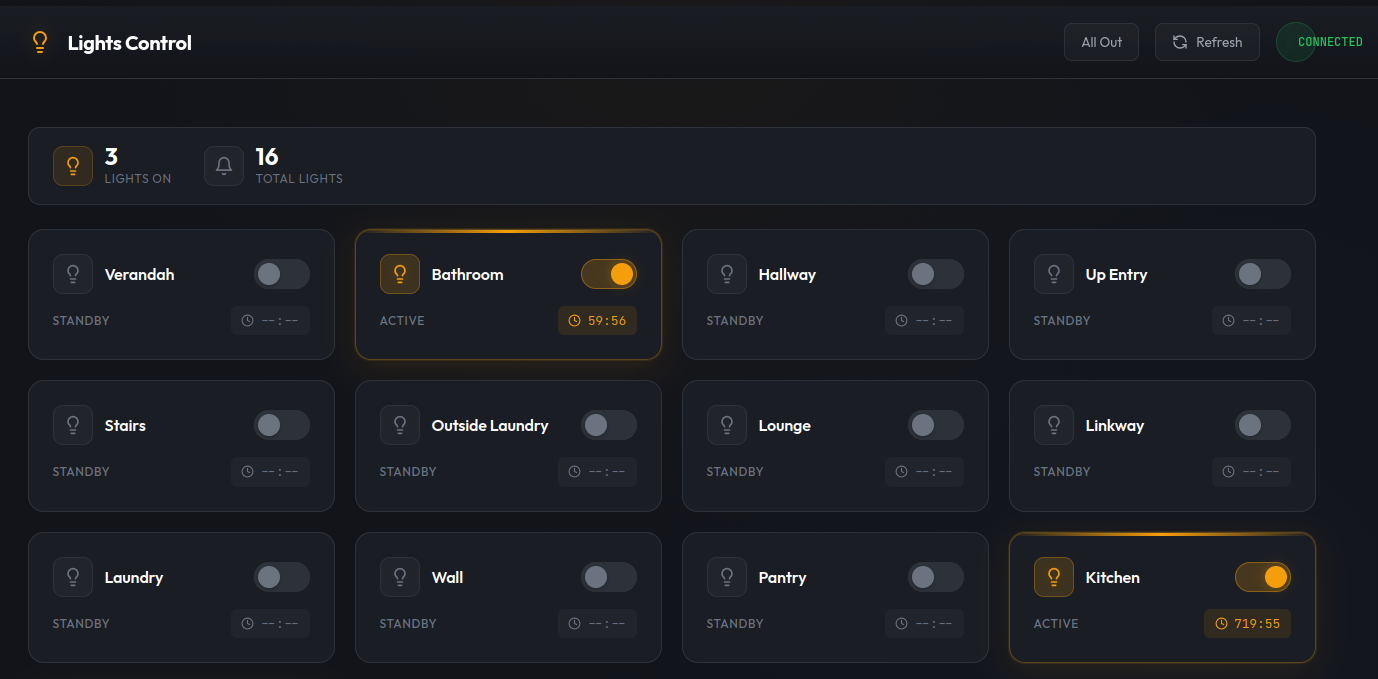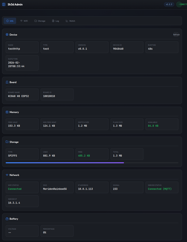 Zero-dependency, self-contained HTML dashboards designed to run on resource-constrained devices like the ESP32.