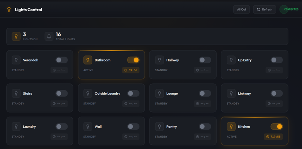 A single HTML file containing all SVG, CSS, and JavaScript needed to control and monitor your embedded device. No external dependencies, no CDN, no internet connection required.